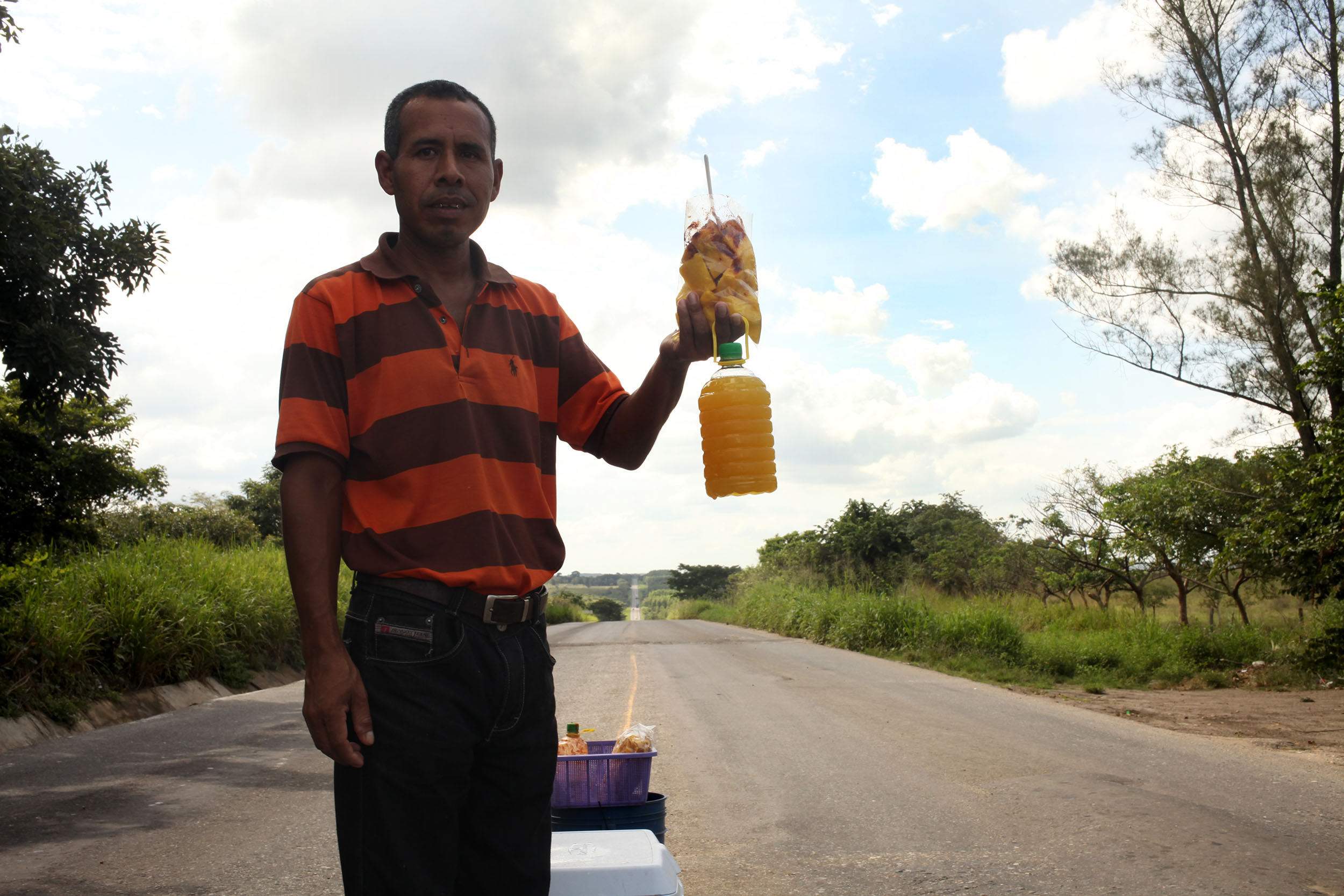 Portrait of a Piña vendor along Highway 145. They juice it, bottle it, ice it and sell it the same day. Photo: Alex Washburn