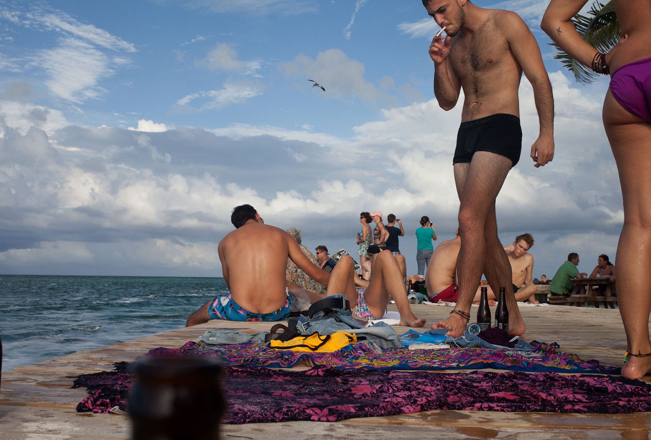 After our 45 minute water taxi ride to the Island we found ourselves blinking in the sunlight walking down a rough dock towards unpaved roads and brightly painted buildings- the tense feeling the city had given us started to fade. After dropping off our bags to the hotel we immediately made our way to what is know as ‘the split’ on the North end of the inhabited portion of Caye Caulker.