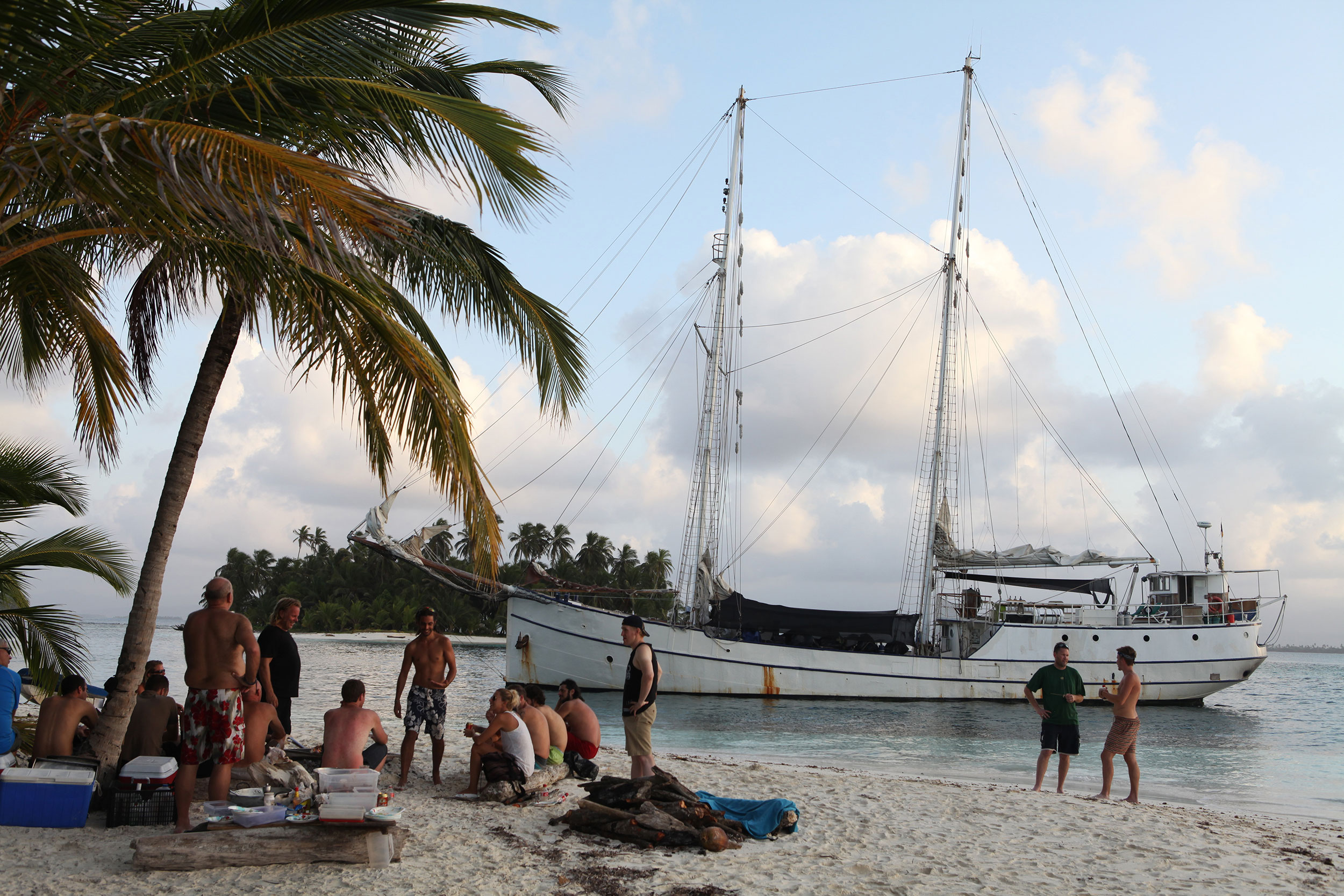 Passengers of the Stahlratte make conversation on the beach before heading back to the boat for the night. Photo: Alex Washburn