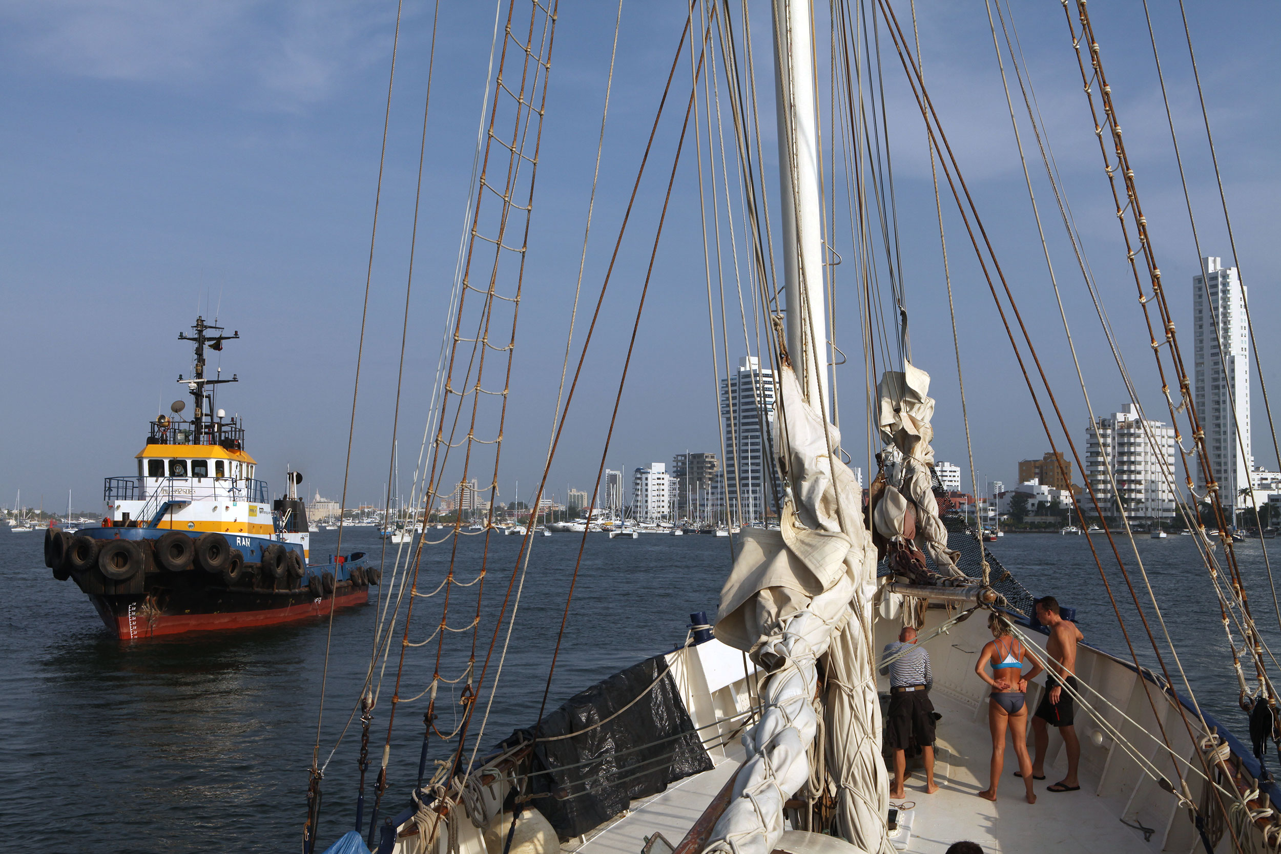 I had managed to swallow enough dramamine that I was okay – and able to sleep. I spent the rest of the night in the sweaty darkness tangled with that bag. I didn’t moved until we were pulling into the harbor of Cartagena the next morning… where our adventures with Aduana would soon begin.