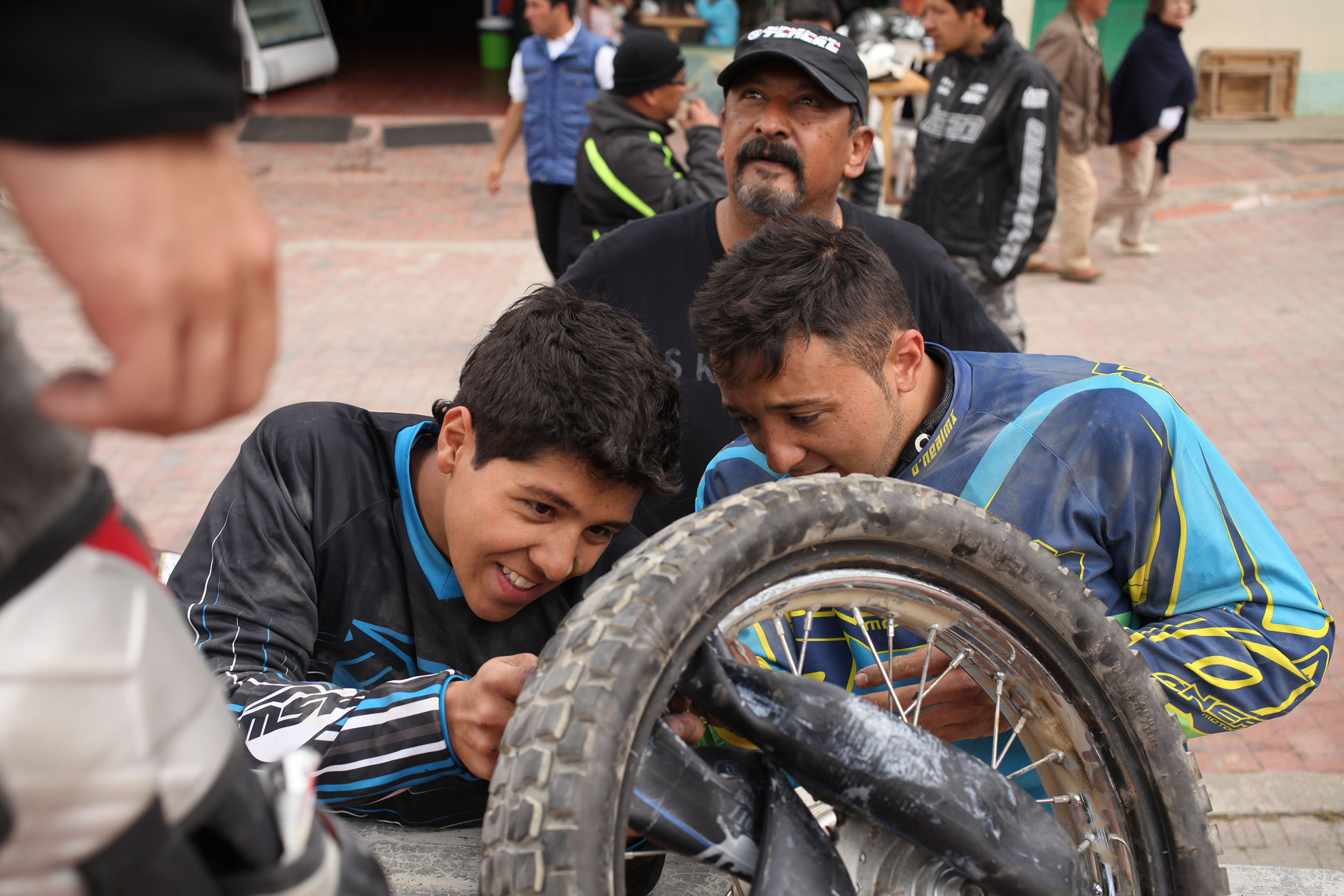 We got to the little breakfast place in a tiny town I do not know the name of and the Colombian posse went to work. Some people immediately began searching for bricks to use as a center stand while other people began unpacking the tools they thought might be useful to fix the tire. Through the whole ordeal people were teasing the young kid who had the flat, though it was all good-natured, like big brothers teasing a younger one taking up a new hobby.