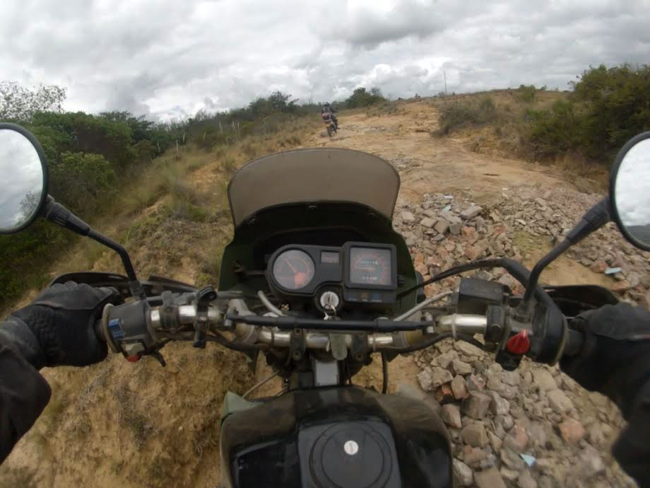 The three of us made it up to flat grass field at the top without further incident and I announced to everyone after Nathaniel asked what happened that I had fallen DOS VECES. One of them asked me if the bike was okay and I responded in Spanish: “Oh of course, the KLRs are mules!” They seemed really surprised that I was still stoked about EVERYTHING.