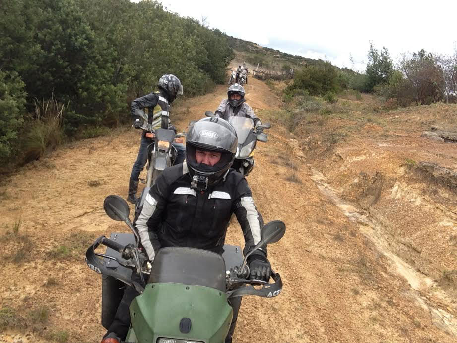 Our KLRs are considered dual sports, which means they aren’t the best at off-roading or the best at long distance cruising, but they are good enough at both to be perfect for our trip, they are a jack of all trades. Obviously we couldn’t keep up with the the 1200cc bikes on the open highway, but the organizers were really excellent at keeping everyone together. We waited at the highway exit for the little dirt bikes to catch up and for the quad rider to join us before winding through a small town and hitting our first dirt road.