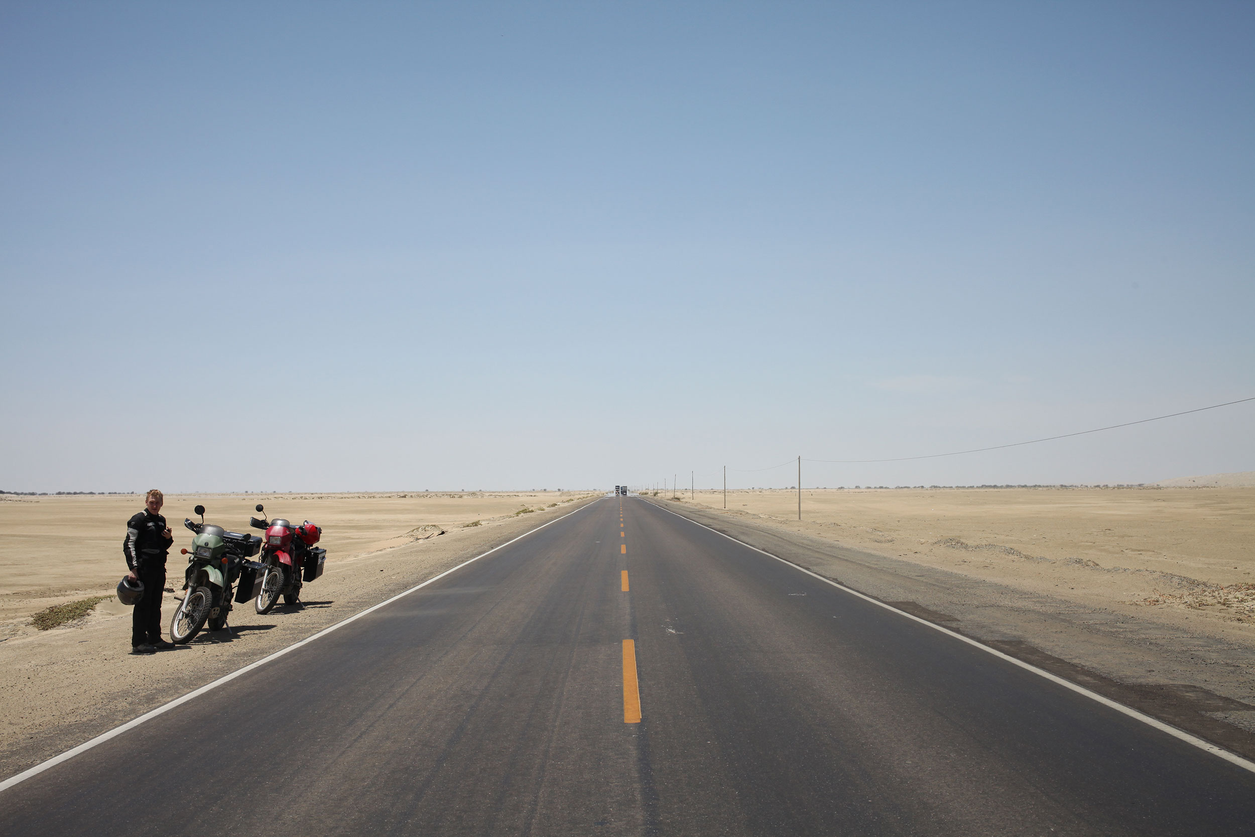 We stopped for a quick photo break 200 miles(isn) north of Lima. We were tired and dehydrated when we finally arrived although this desert is not actually that hot. Photo: Alex Washburn