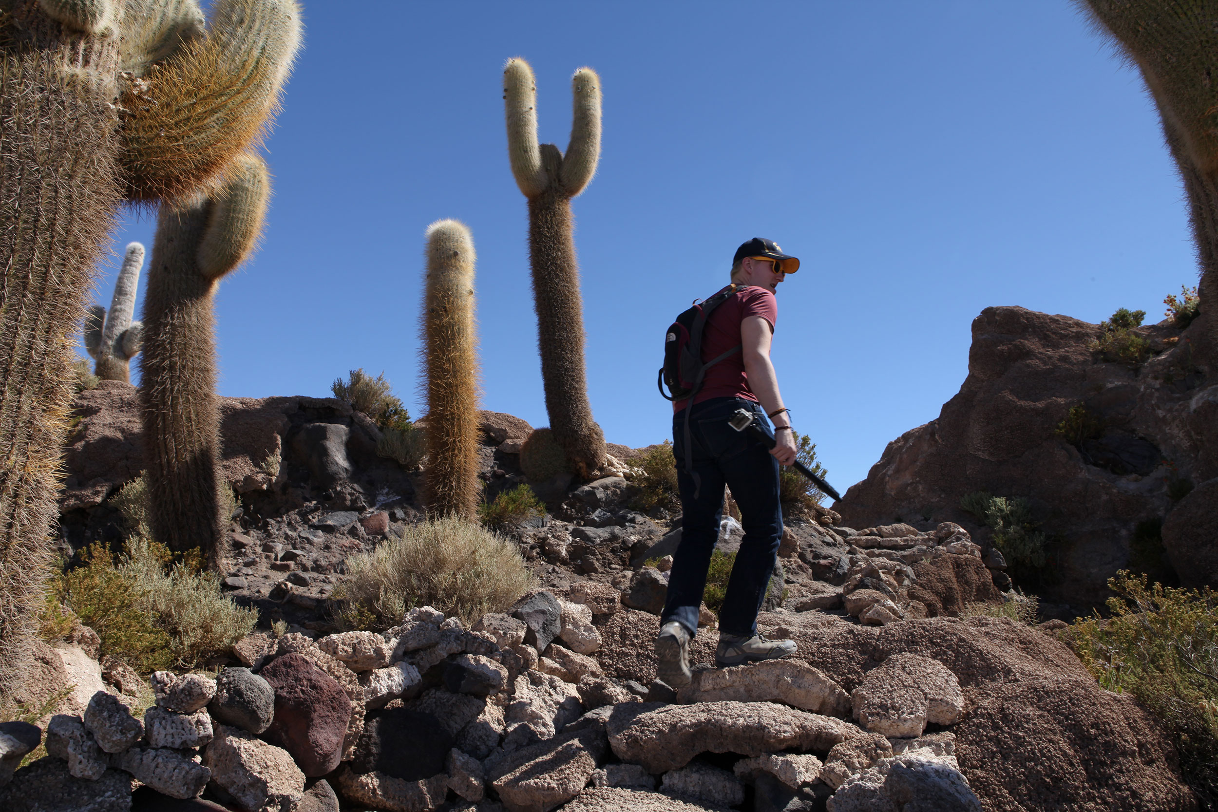 There are two ‘islands’ on the Salar de Uyuni. We paid our 30 Bolivianos to walk around the Isla Incahuasi and the desert flora made a strange contrast to the smooth expanse of white surrounding it. Photo: Alex Washburn