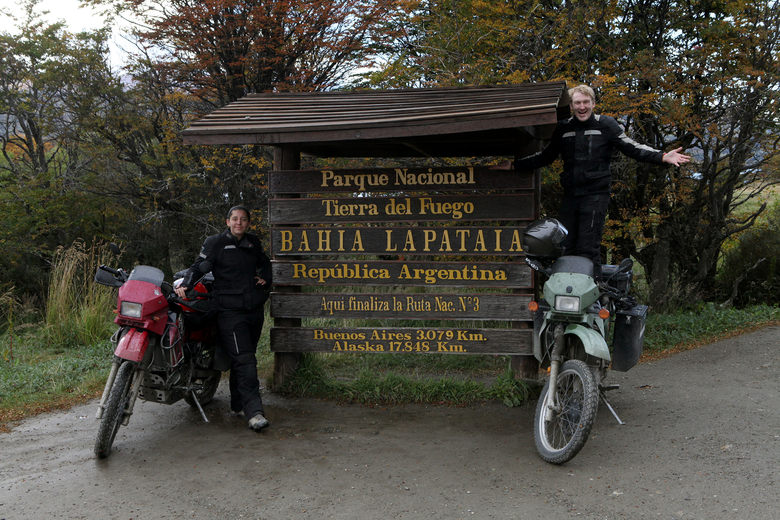 After seeing the penguins there was only one other goal we had to accomplish in Ushuaia, and that was officially reaching the end of Ruta-3, which is the literal fin del mundo. Ruta-3 runs through Ushuaia and into Tierra Del Fuego National Park finally ending at Bahia Lapataia. There is a famous sign at the end that declares the official end to Ruta-3, and all bikers joke that you haven’t truly made it to the fin del mundo, until you take a picture of your bike in front of the sign.