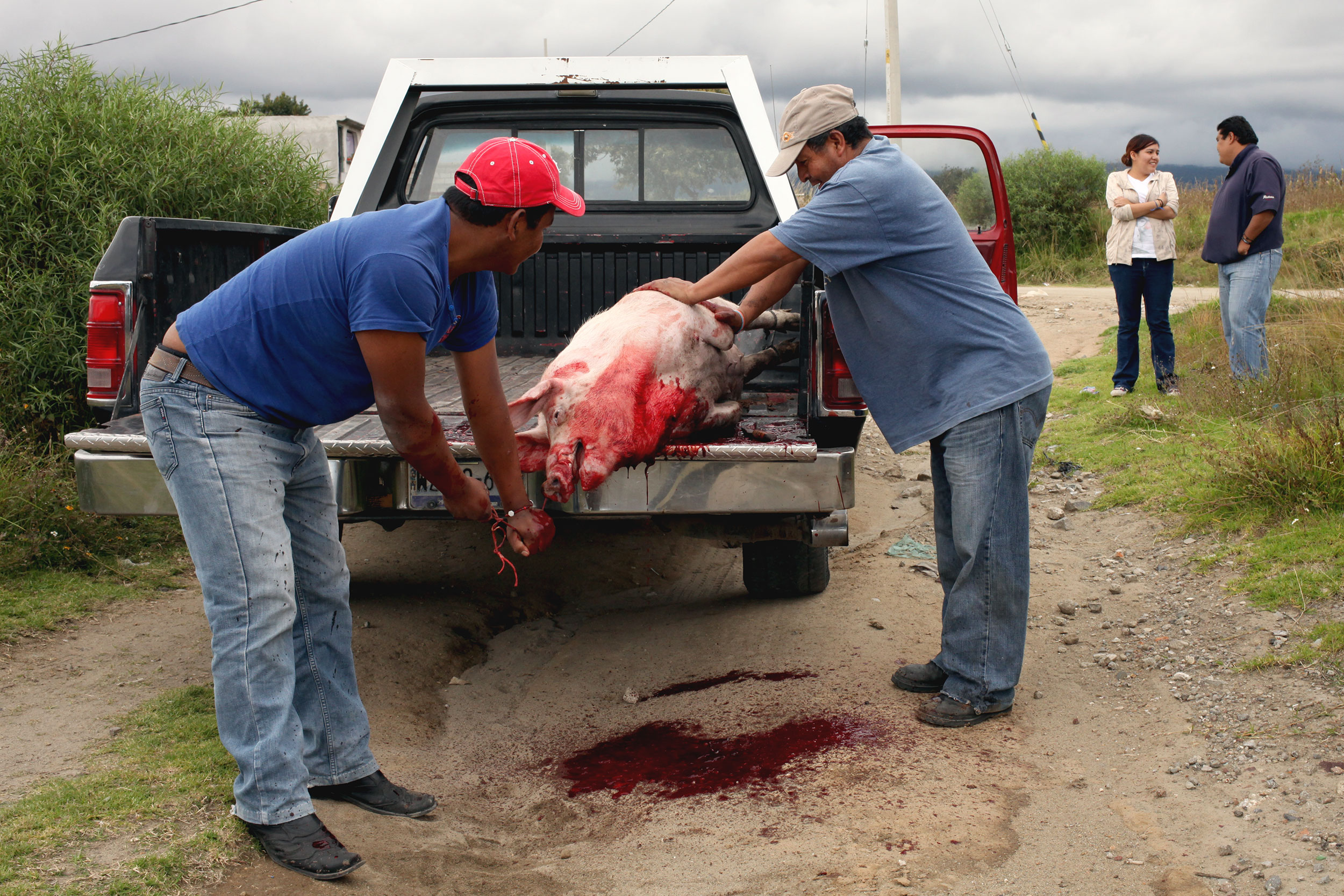 To disturb the neighbors as little as possible the butchers decided to kill the pig in a field a few blocks from the house. Photo: Alex Washburn