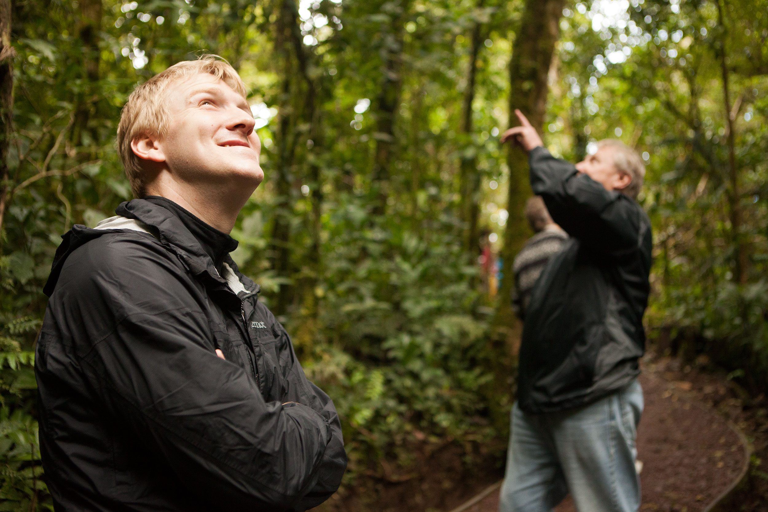 On the one full day we had in Monteverde we left early in the morning for a hike around the cloud forest (the place where clouds are literally born, from the warm weather on the pacific mixing with the cold air from the Caribbean). The biodiversity of Costa Rica is truly stunning as we saw sloths, quetzals, spiders, snakes, anteaters, coatimundi, and many varieties of hummingbirds. Our tour guide Bernal was one of the best we have had on this trip, animated and clearly loving being able to hike for a living. Photo: Alex Washburn