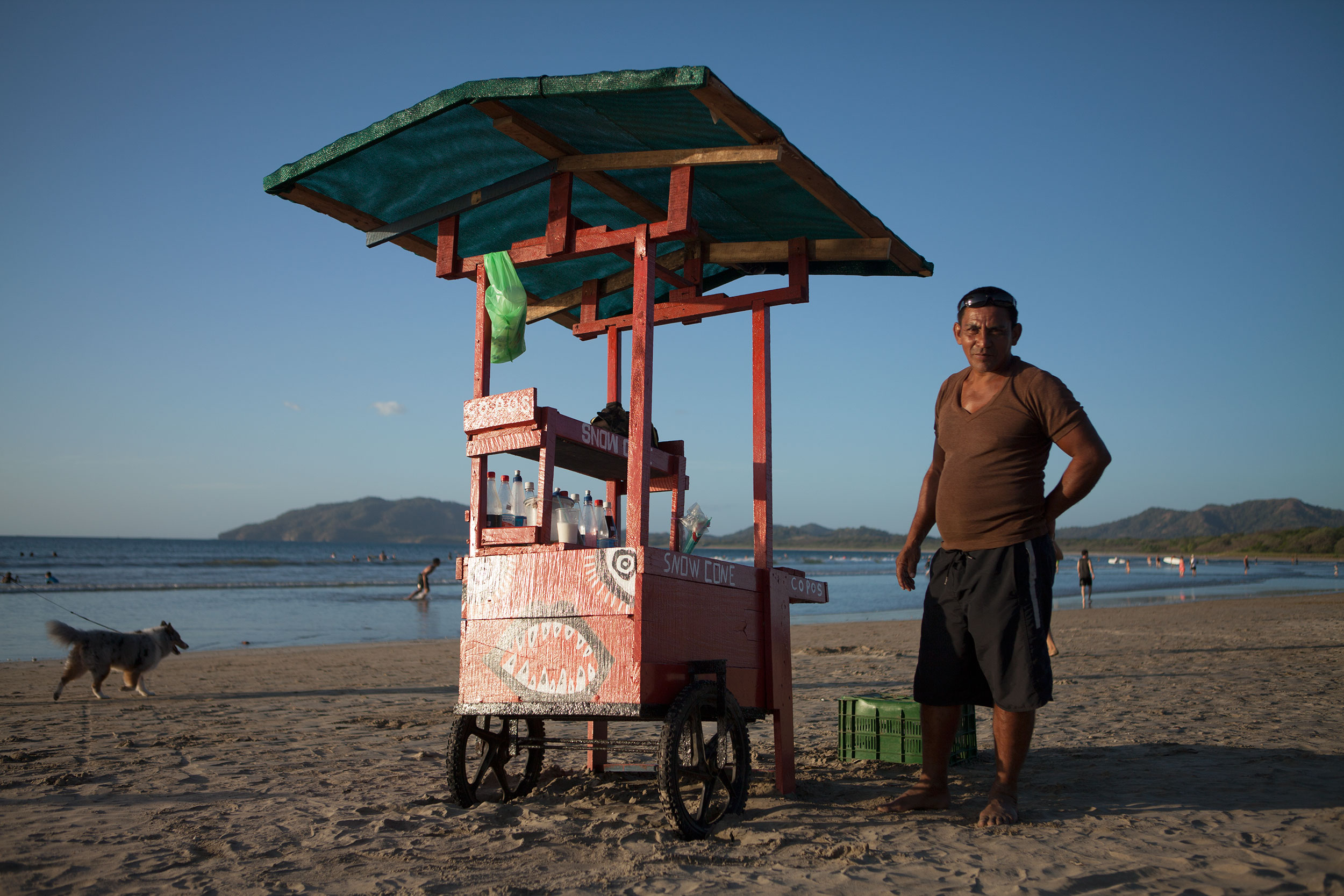 Tamarindo was the greatest little surf spot nobody had ever heard of…fifty-years ago. Now-a-days it is chuck full of boutiques, surf shops, and ex-pats all looking for a piece of the tourist dollar. As it is ‘high season’ in Costa Rica (from December to April), all the menus have been swapped and hotel rates lifted, making Costa Rica the most expensive country, by far, we have visited in Central America and often putting meals at or above American prices. The town itself is a small main street that hugs the coast and then splinters into dirt roads that go off into neighborhoods. The less adventurous traveler may enjoy Tamarindo for its faux third-world atmosphere and pervasive English, but veteran travelers can find less touristy spots with better surf elsewhere. The street food scene (usually budget friendly) is also pretty weak – this Snow Cone vendor was one of only three good finds Alex made in two days. Photo: Alex Washburn